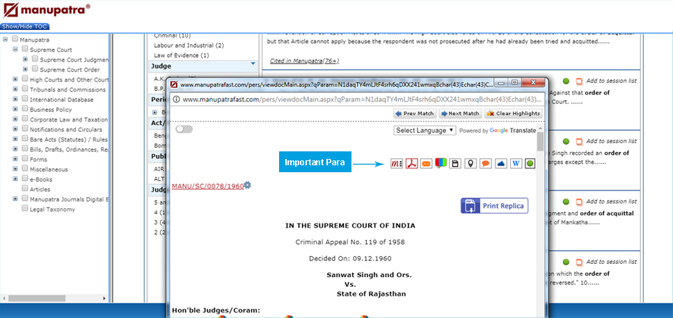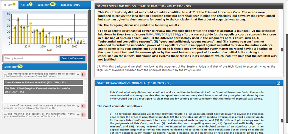 m-Para® is a feature by which user can view the key paragraphs of any judgment, number of times the key paragraph/s has been referred in Supreme Court judgments, details of the SC judgments in which these paragraphs have been referred, along with the treatment given by Supreme Court to these key paragraphs.