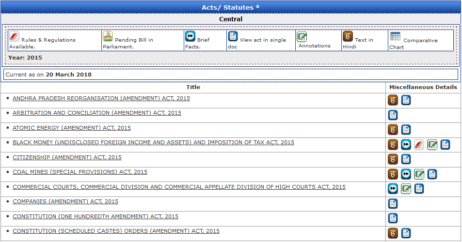 - Bare Acts show different signs in front of them. These are also displayed on the top.
