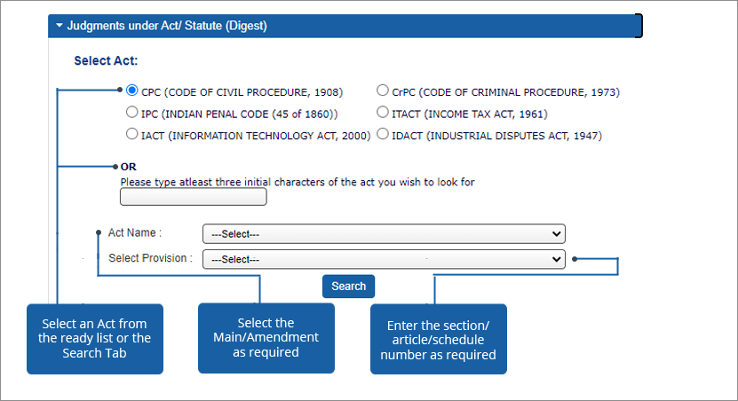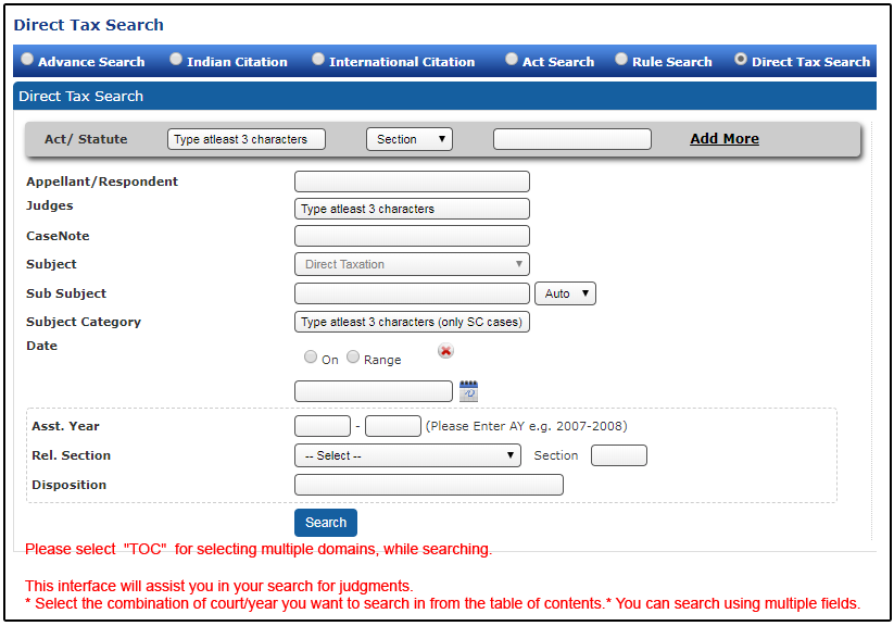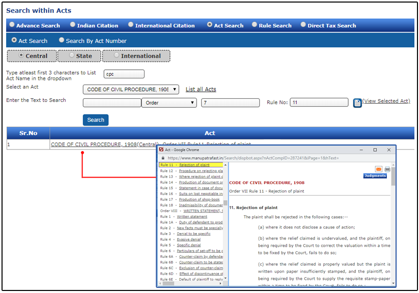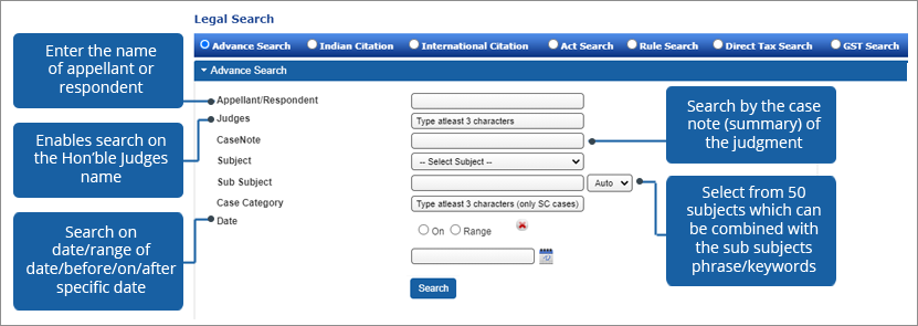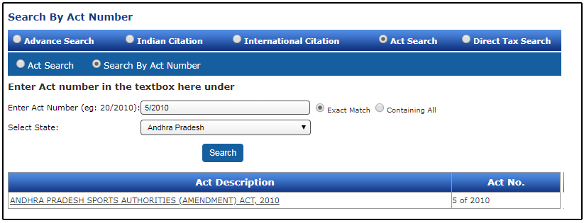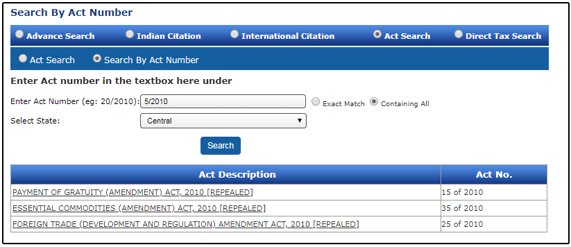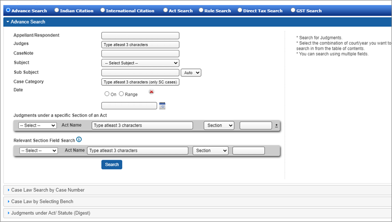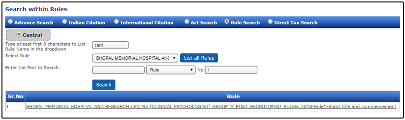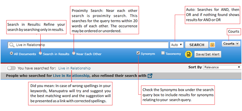 - By default the search is done on ‘All documents’. All documents means the entire Manupatra database.