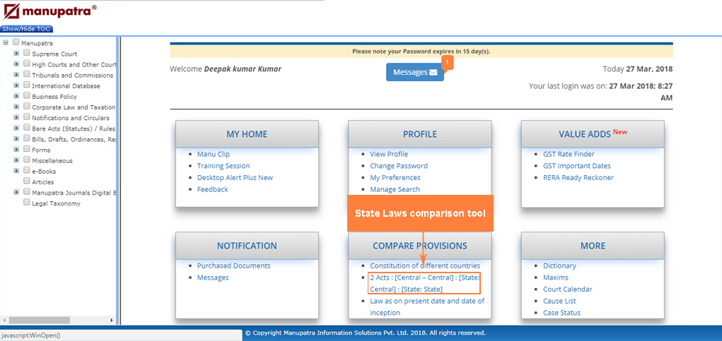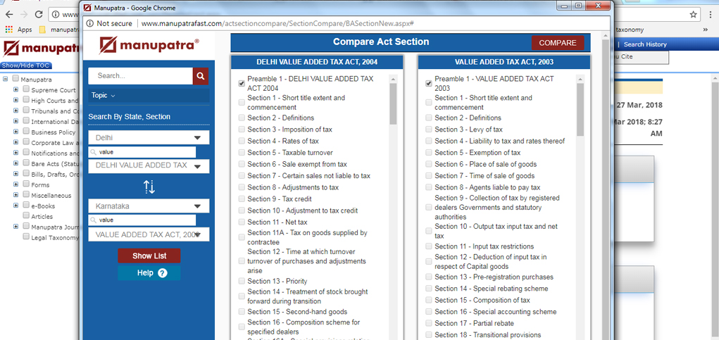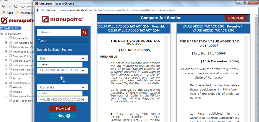 State Laws comparison tool compares the provisions of various state laws applicable in different states in a single window. You can also search for any legal or general word in the displayed result and analyze their usage respectively.