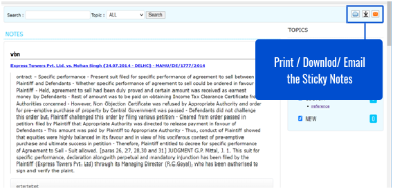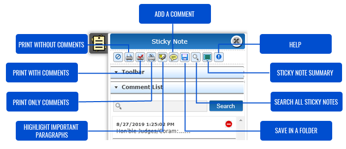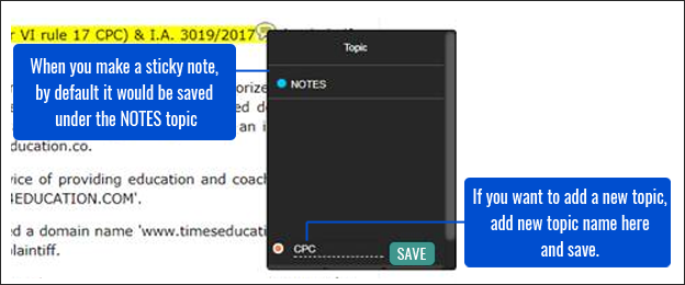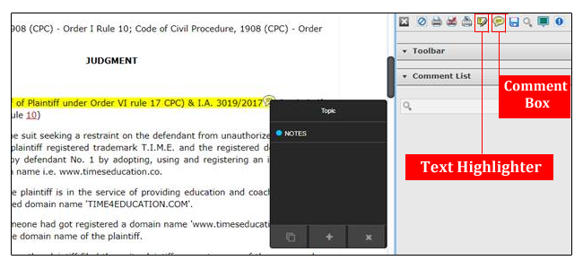 gives an option to highlight important parts in a judgment and add notes and comments in Judgments.