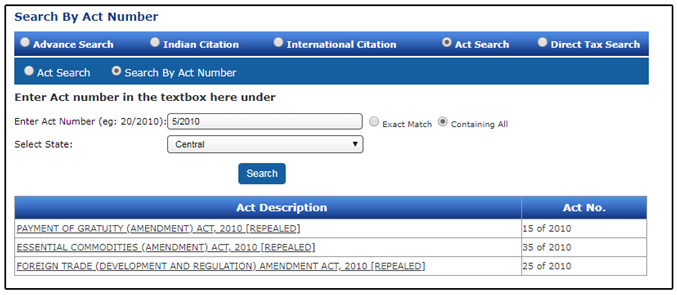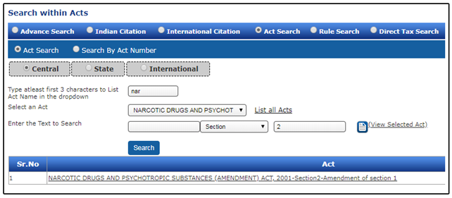Example: In the following example we have searched for Section 2 of the Narcotic Drugs and Psychotropic Substances (Amendment) Act